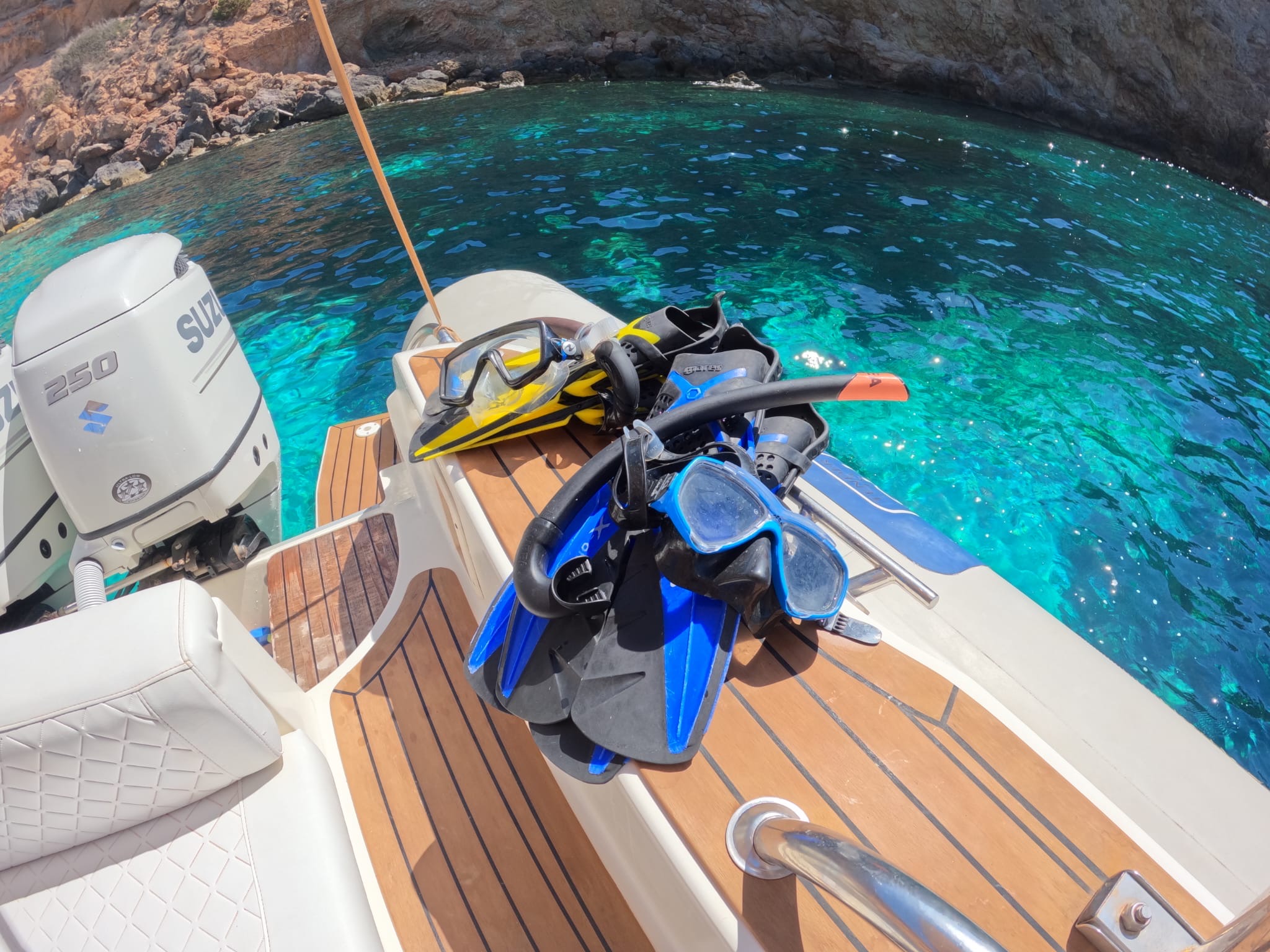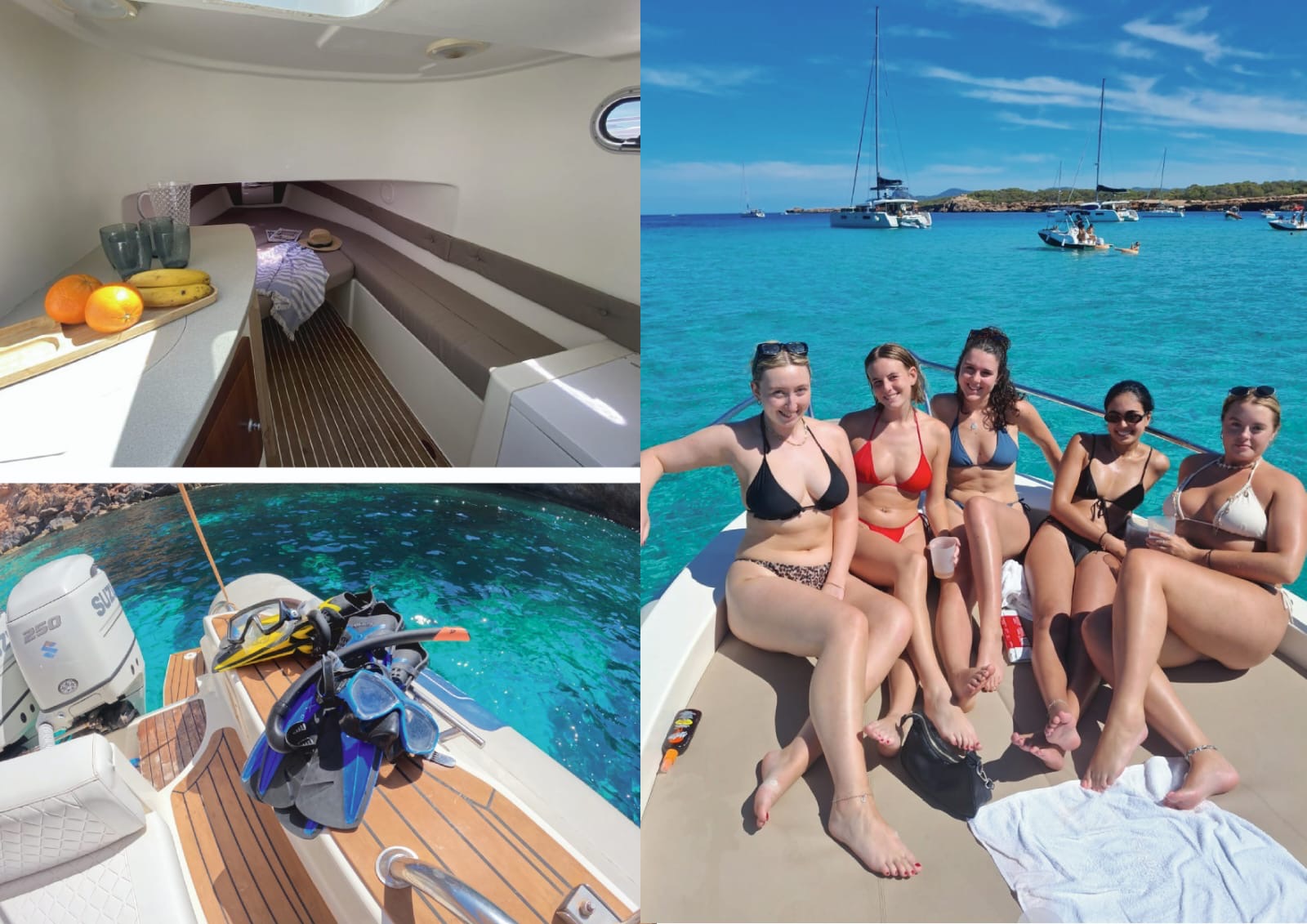 paddle board, equipos de snorkeling, nevera con hielo, bebidas, amarre en SAN ANTONIO DE PORTMANY, limpieza,